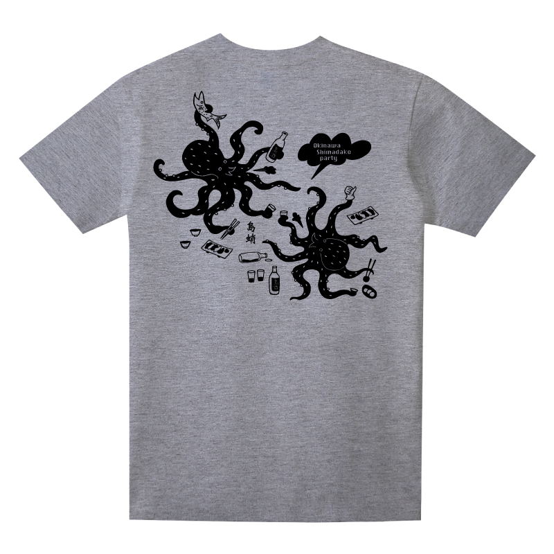 島蛸Tシャツ。島蛸が島酒を飲んで酔っているイラストが面白い(笑)