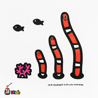 沖縄の珊瑚礁域に生息しているニシキアナゴ。砂穴から顔を出している様子に加え、貝殻や珊瑚たちも楽しい色合いを加えた可愛いデザイン!!